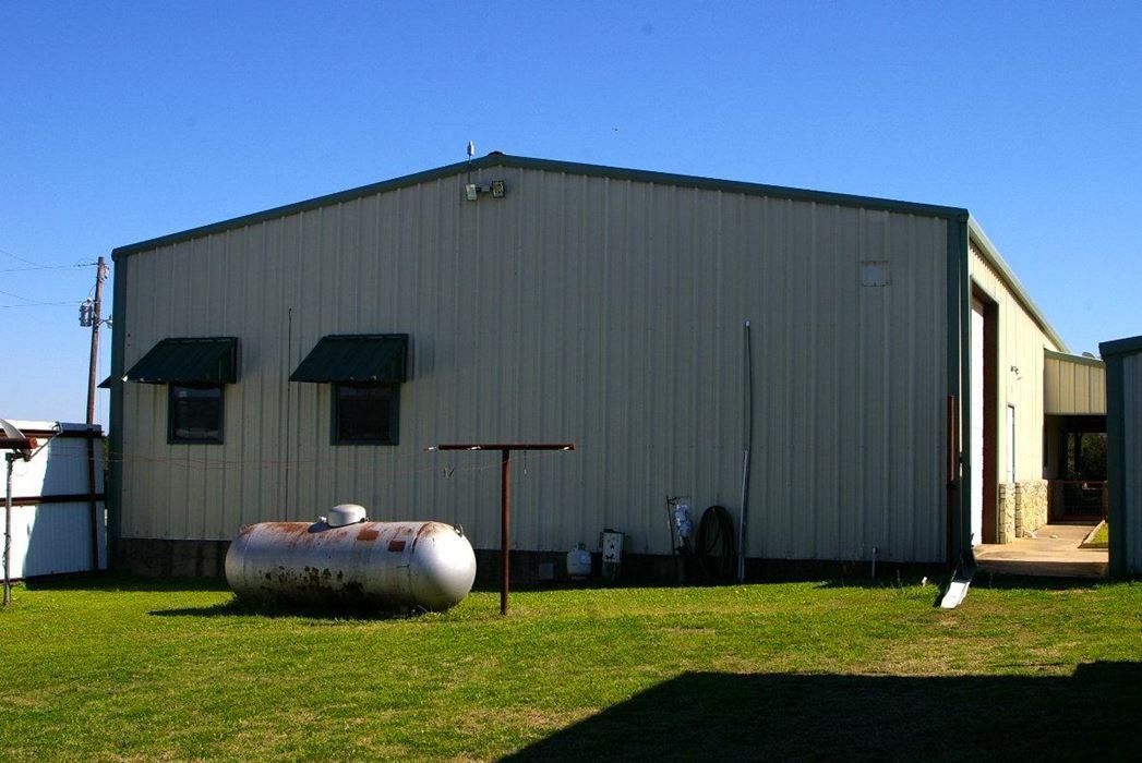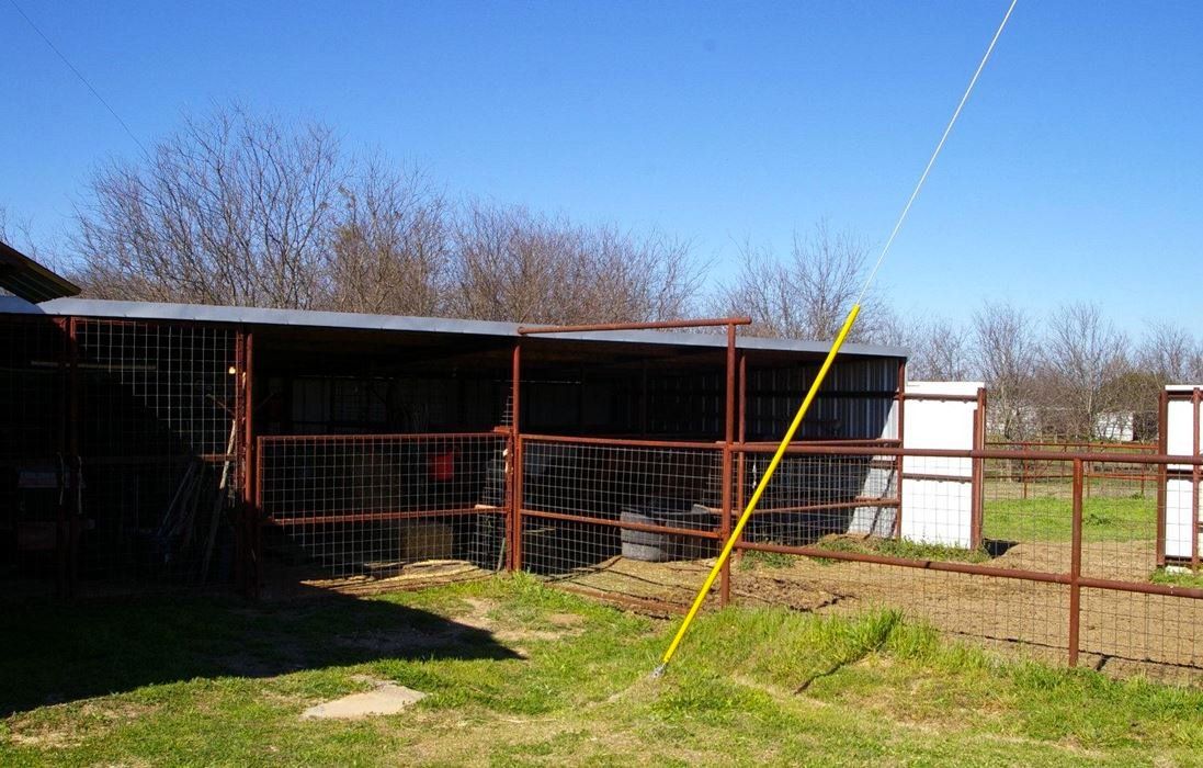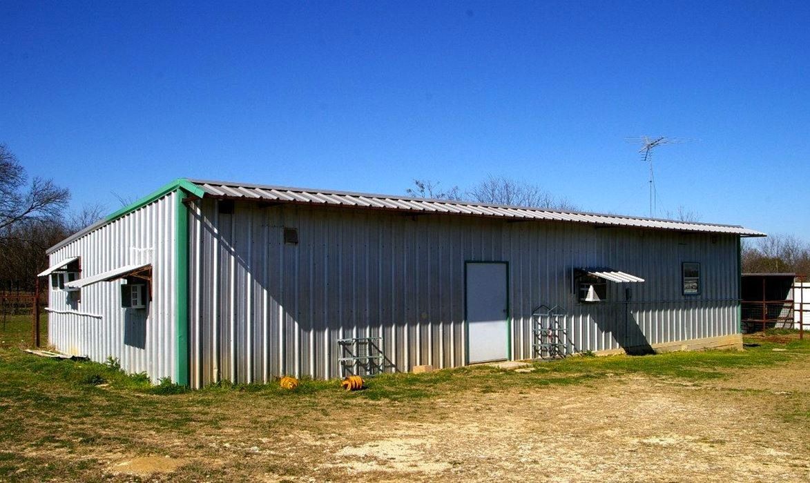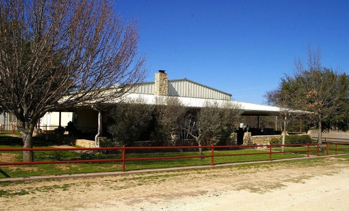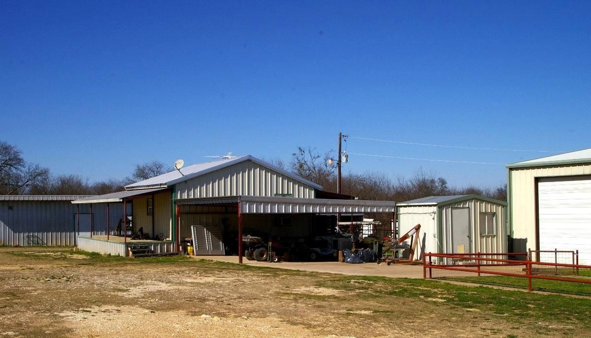 Steel outbuildings include a cute guest house with porches on three sides, a large carport, and a shop with a work area in the middle, 4 separate work rooms, and a bath with a shower. All of the shop areas have window units for air conditioning. There are 3 covered horse stalls with pipe fencing and runs.