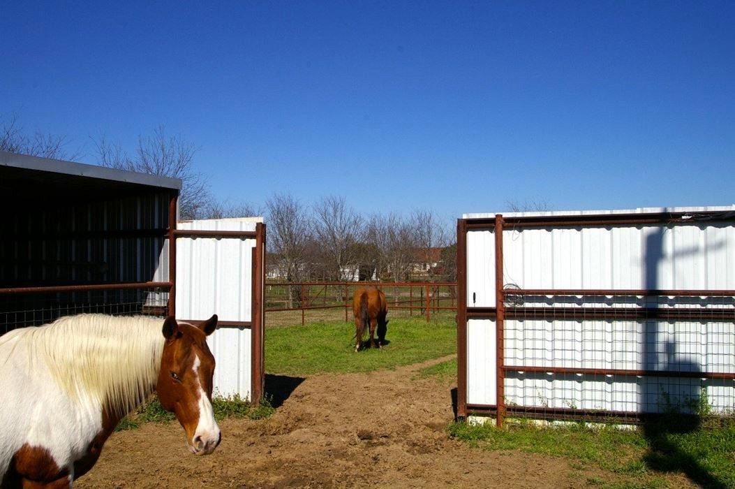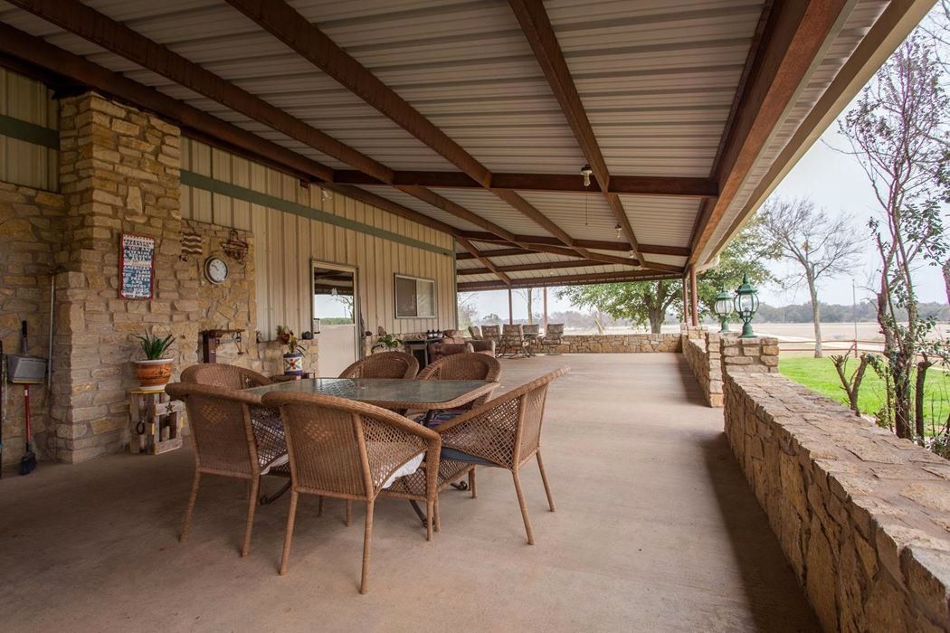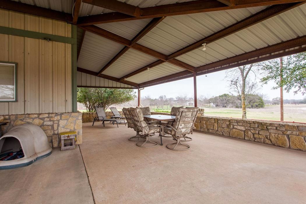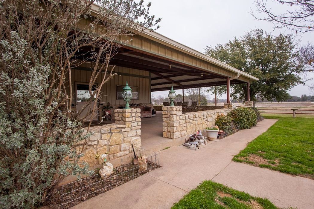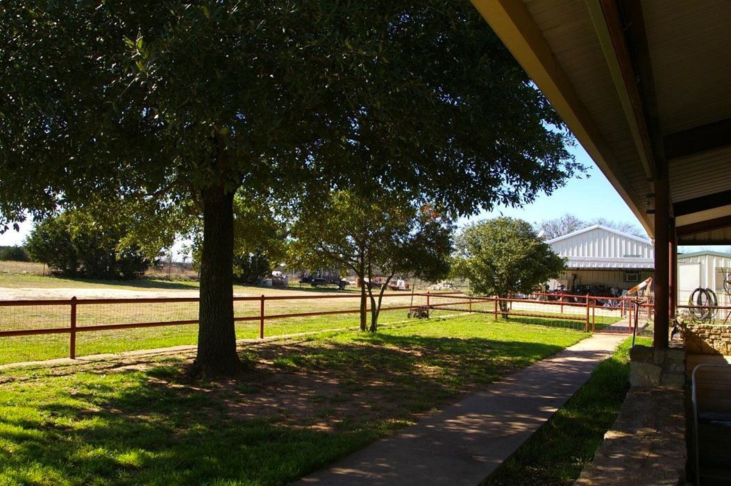 Steel outbuildings include a cute guest house with porches on three sides, a large carport, and a shop with a work area in the middle, 4 separate work rooms, and a bath with a shower. All of the shop areas have window units for air conditioning. There are 3 covered horse stalls with pipe fencing and runs.